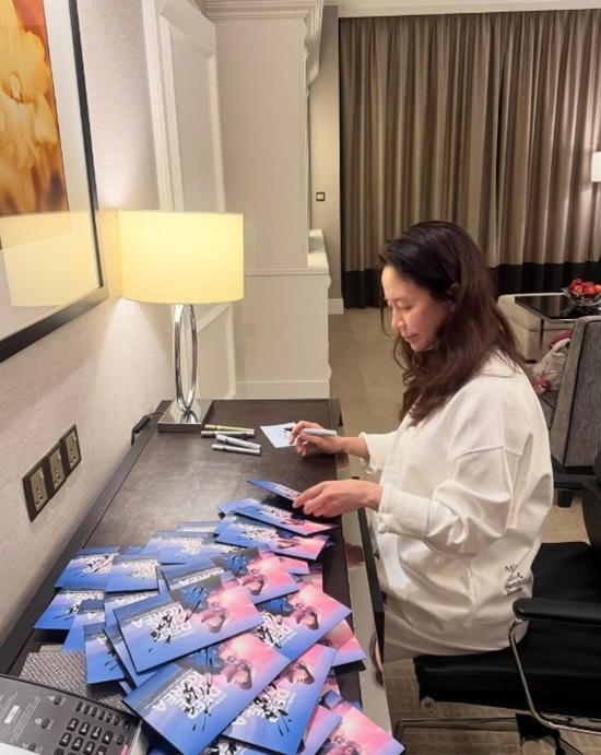 또 다른 사진에서는 숙소인 호텔에서 사인에 열중하고 있는 모습을 공개하며 "#DEEP DIVE KOREA #나는해녀이다 말레이시아에서 만나요"라는 글과 사진을 덧붙였다.