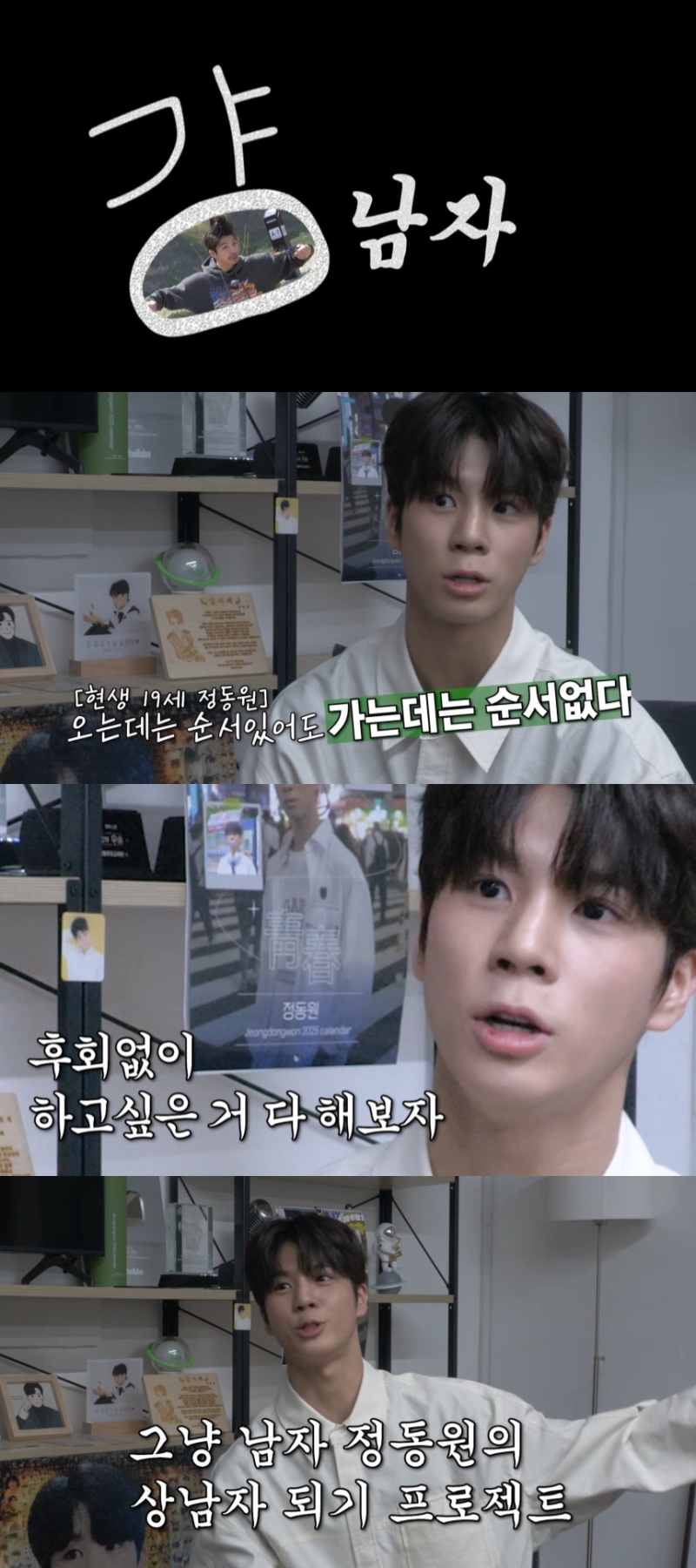 공개된 영상 속 정동원은 "왜 상남자가 되고 싶냐"는 질문에 "오는 데는 순서 있어도 가는 데는 순서 없다. 내가 언제 갈지 모르는데 이번 생에 하고 싶은 건 다 해보자는 생각이다"라며 다소 조숙한 발언으로 웃음을 자아냈다.
