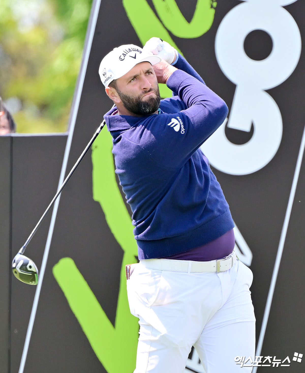 (엑스포츠뉴스 인천, 김한준 기자) 2일 인천 송도동 잭니클라우스 골프클럽 코리아(파72)에서 열린 'LIV골프 코리아(총상금 2500만 달러)' 1라운드 경기, 존 람이 3번홀 티샷을 날리고 있다.