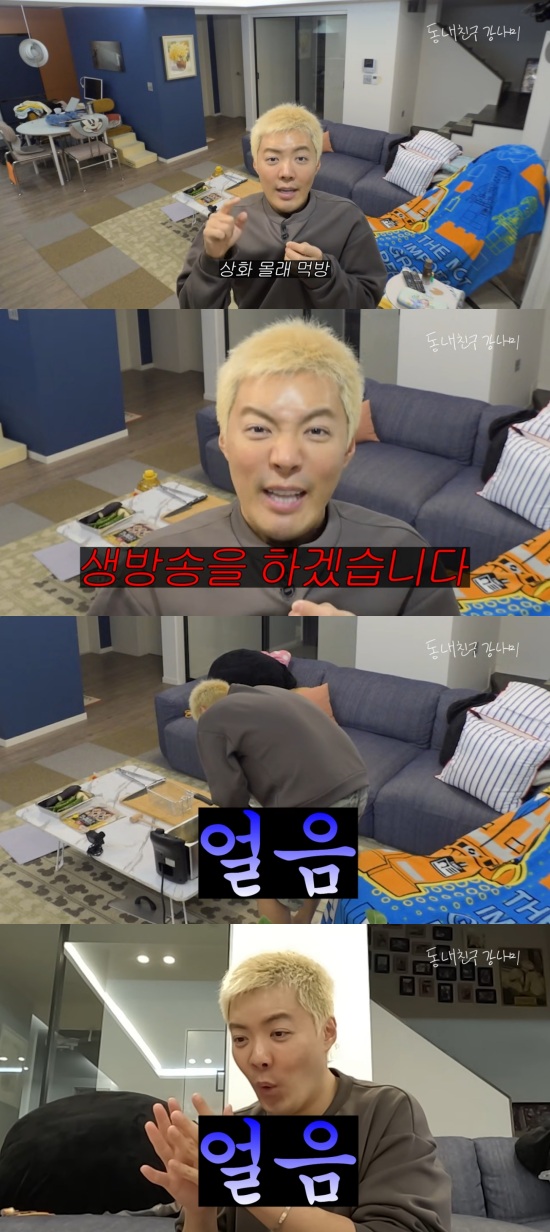 지난 1일 '동네친구 강나미' 유튜브 채널에는 '상화 몰래 생방송(Live) 켜고 튀김 덮밥 먹었습니다'라는 제목의 영상이 게재됐다.