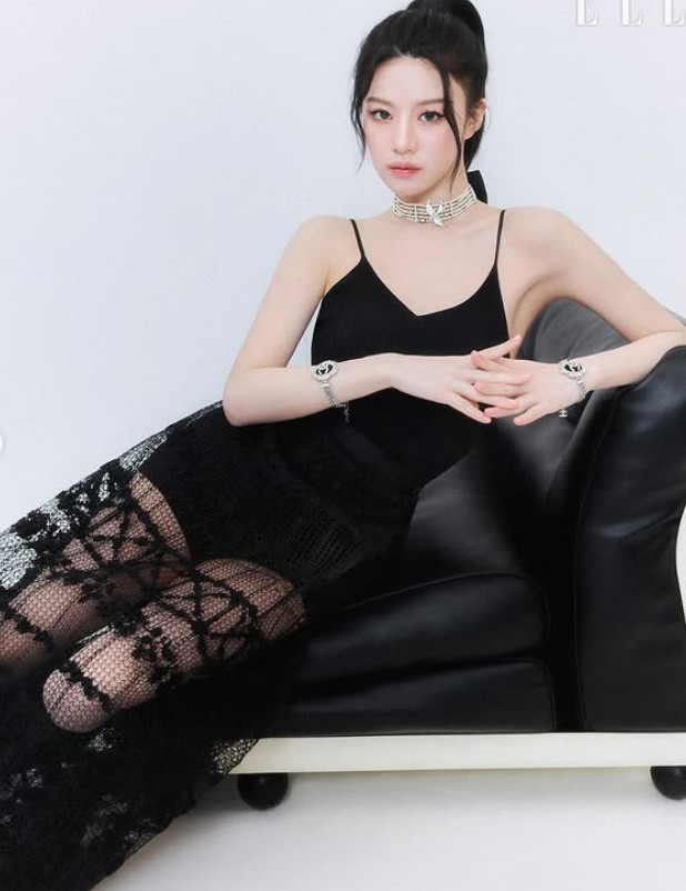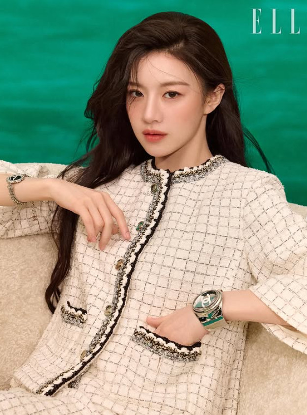트위드 자켓을 입은 채 상큼하면서도 고급스러운 분위기를 풍기고 있어 시선을 모았다. 이어진 사진에서는 시스루 스커트를 매치한 블랙 패션을 선보였다. 특히 샤넬 목걸이와 머리핀으로 포인트를 주어 눈길을 끌었다. 앵두같은 입술과 카메라를 응시하는 눈빛 등 고양이상 미모와 뚜렷한 이목구비가 돋보였다.
