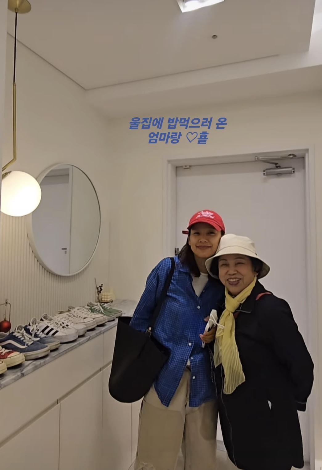 공개된 사진 속에는 이효리와 어머니의 모습이 담겼다. 이효리는 언니의 집을 찾아 현관 앞에서 환한 미소를 짓고 있는 모습. 이효리와 어머니의 닮은꼴 비주얼이 시선을 사로잡는다.