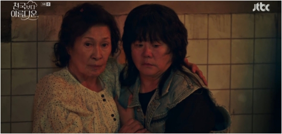 3일 방송된 JTBC 토일드라마 '천국보다 아름다운' 5회에서는 이해숙(김혜자 분)이 지옥에서 이영애(이정은)와 재회한 모습이 그려졌다.