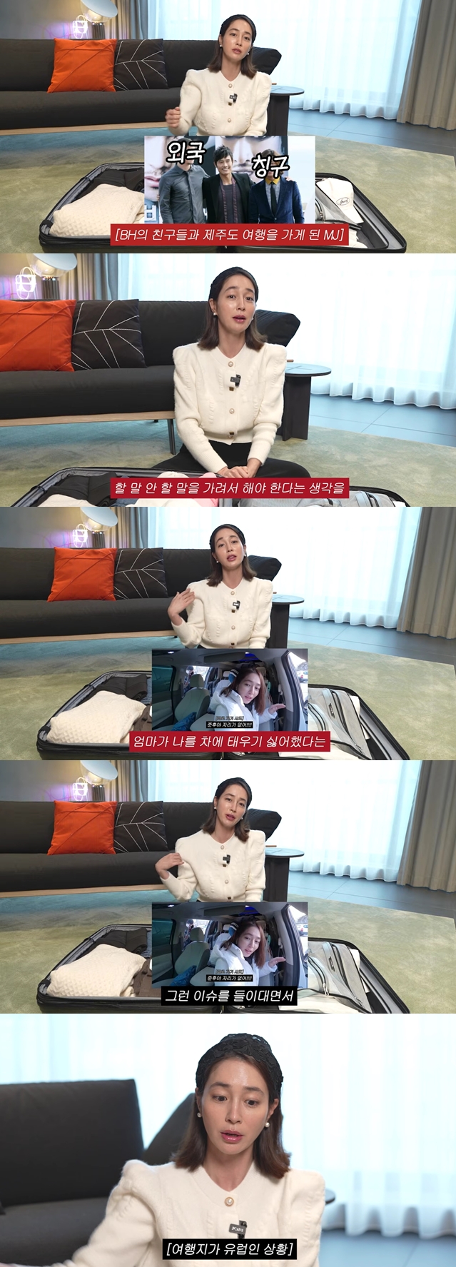 영상에서 이민정은 이병헌과 함께 제주도 여행을 떠났다. 여행에 앞서 짐을 정리하던 이민정은 앞서 여행을 혼자 가고 싶었다고 이야기한 것을 언급하며 "제가 생각했는데 유튜브가 할 말 안 할 말을 가려서 해야 한다는 생각을 살짝 했다"라고 고백했다.