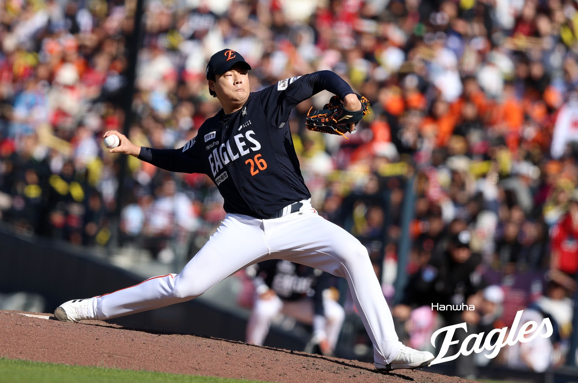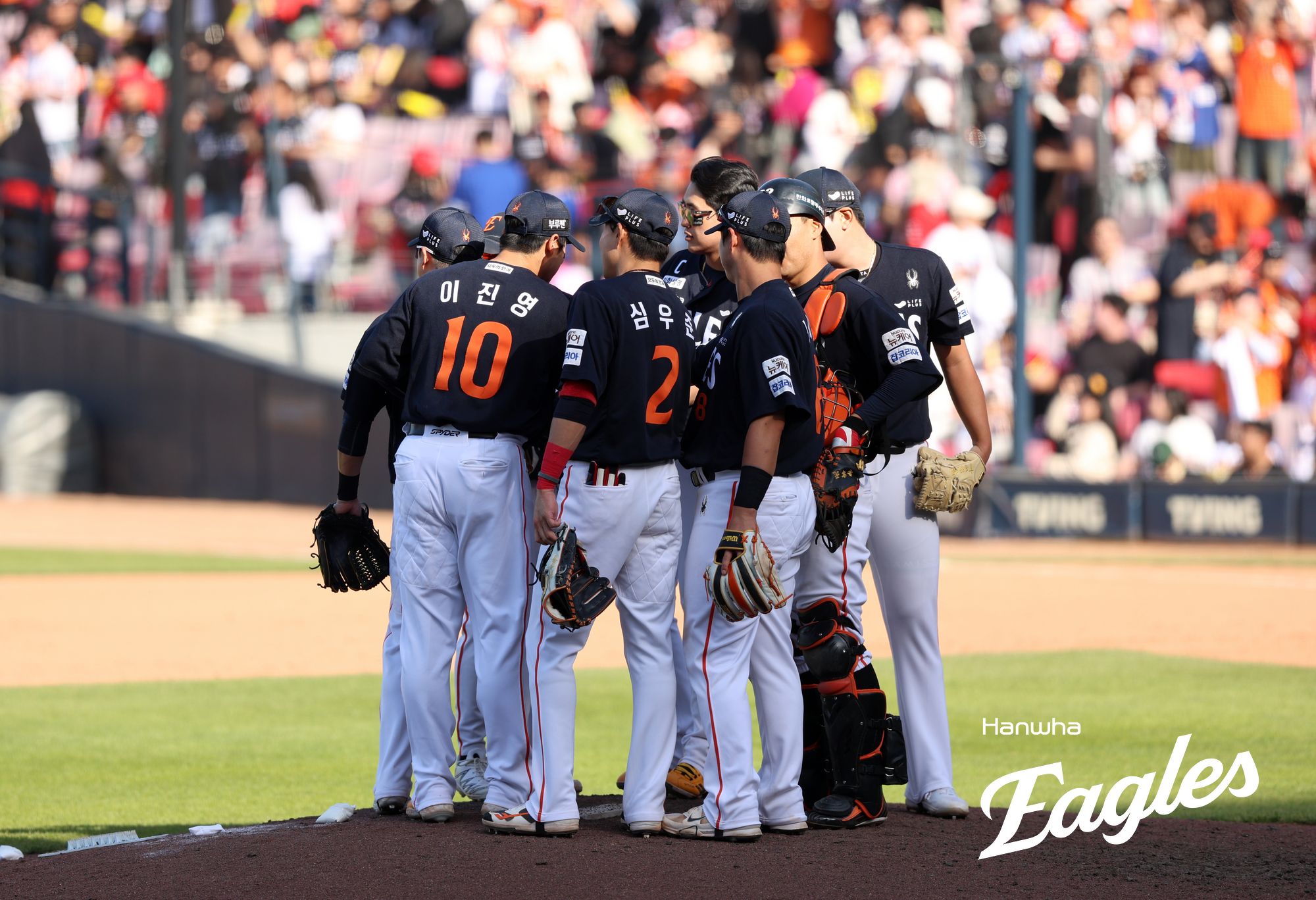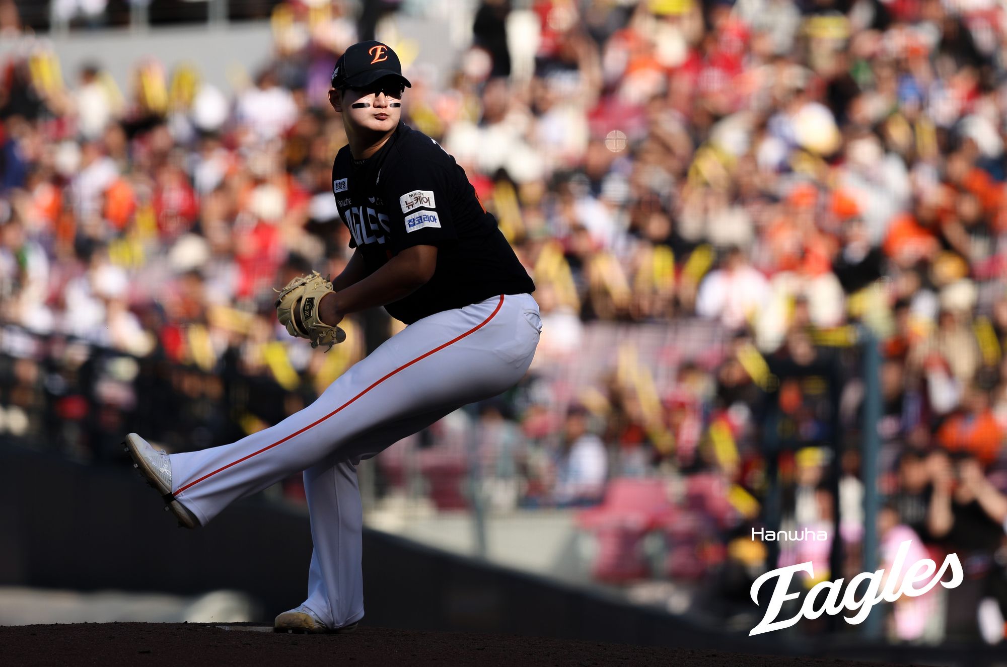 3회초는 최재훈이 체인지업, 황영묵이 슬라이더, 안치홍이 직구에 헛스윙 삼진을 당하며 K-K-K로 끝났다. 4회초에는 몸에 맞는 공으로 출루했던 문현빈이 늦은 귀루로 허무하게 견제 아웃되기도 했다. 문현빈은 4회말 수비가 시작되며 플로리얼과 교체됐다.