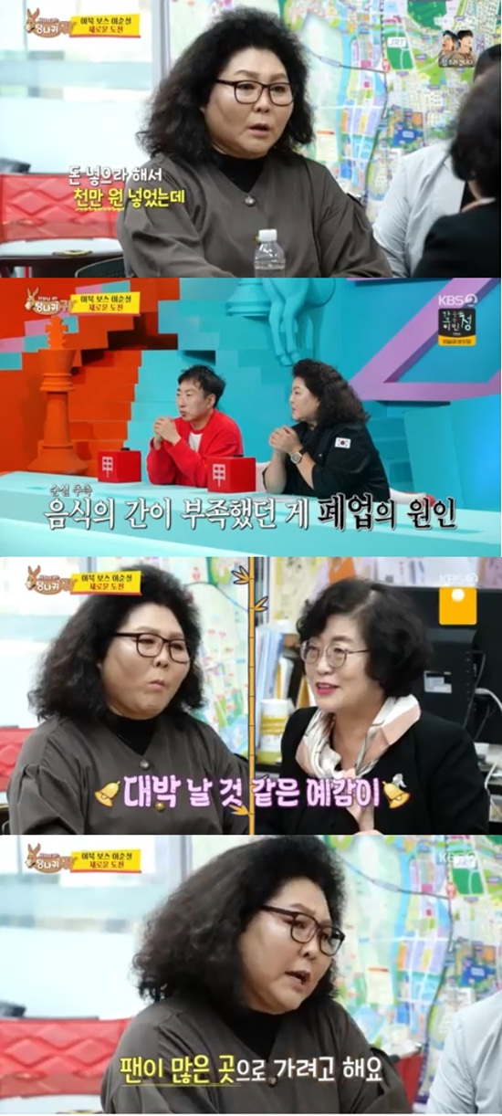 이순실은 그동안 화성, 강원, 제주에서 식당을 오픈했다가 세 번 모두 망해서 폐업을 했었다고 말했다.