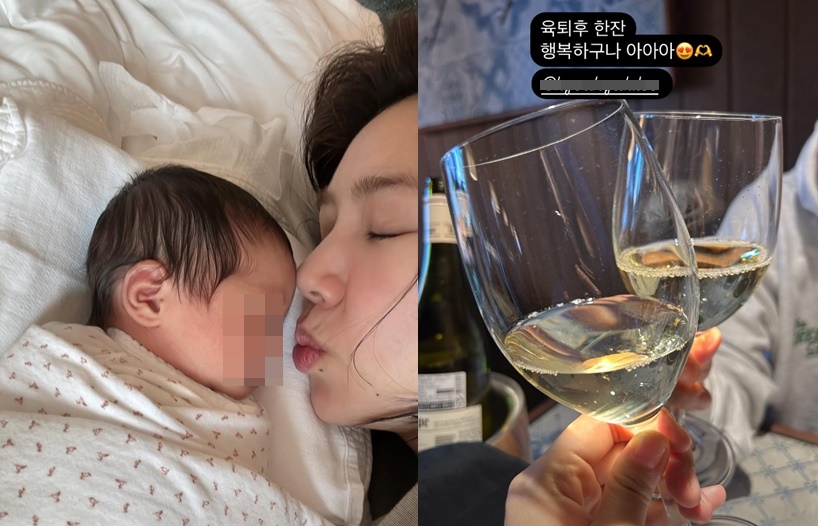 4일 손담비는 자신의 계정을 통해 "육퇴(육아 퇴근) 후 한잔 행복하구나 아아아"라는 글과 함께 한 장의 사진을 게재했다.