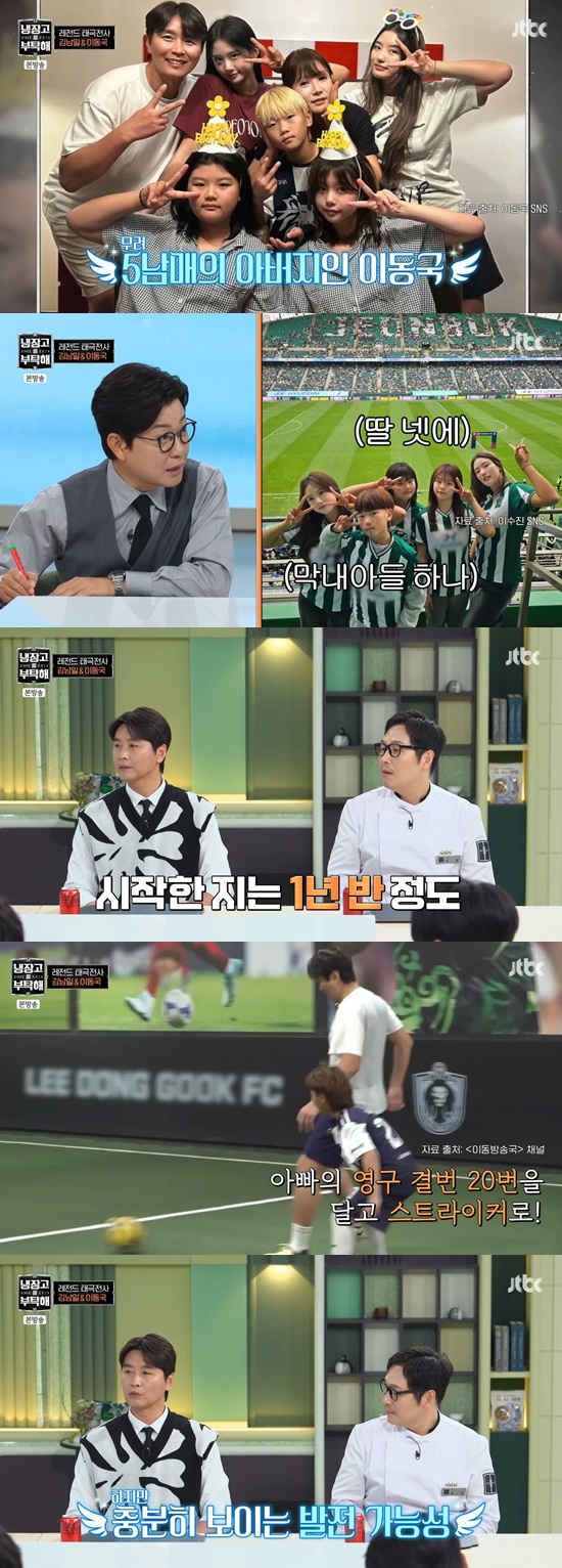 이날 MC 김성주는 "여러분 그것 아시나. 이동국 선수가 5남매의 아버지다. 4명이 딸이고 막내가 아들인데, 막내 (이)시안 군이 아빠처럼 축구를 한다"고 얘기했다.