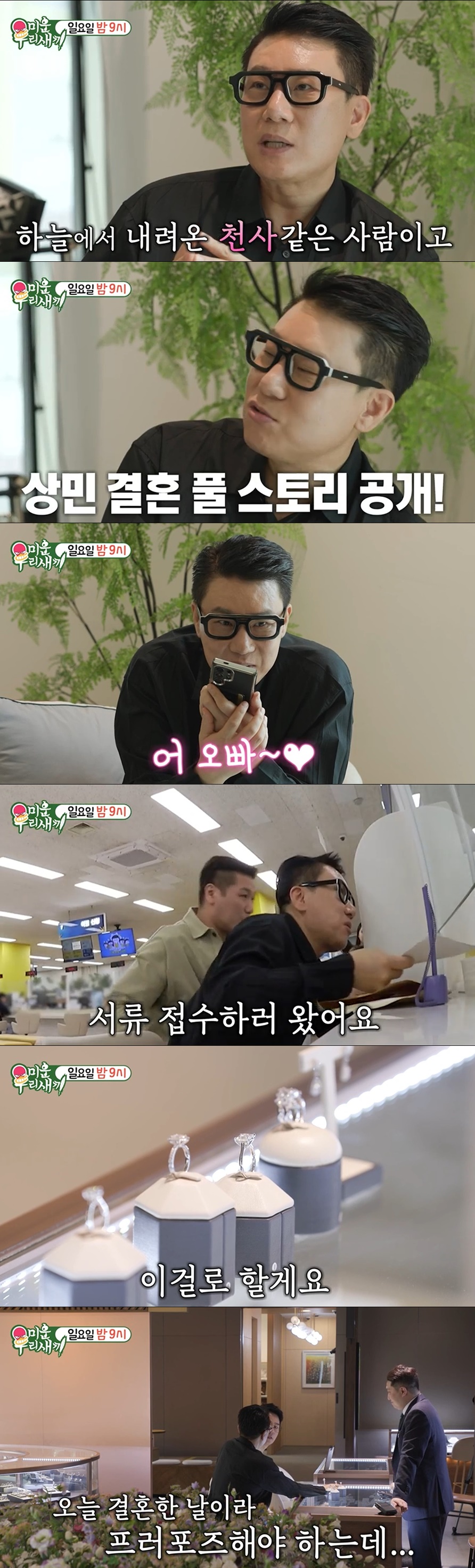 이상민이 속전속결로 혼인신고서를 접수하는 모습과 함께 결혼반지를 고르러 나서는 장면도 그려졌다. 그는 "아내 스타일"이라며 다이아반지를 선택했고, "오늘 결혼한 날이라 프러포즈 해야 되는데. 혼인신고서랑 같이 반지랑 해서"고 말해 설렘을 더했다.