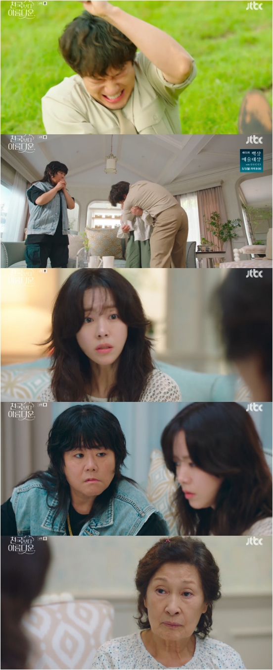 4일 방송된 JTBC 토일드라마 '천국보다 아름다운' 6회에서는 이해숙(김혜자 분)이 지옥에서 재회한 이영애(이정은)와 함께 천국으로 돌아온 모습이 그려졌다.
