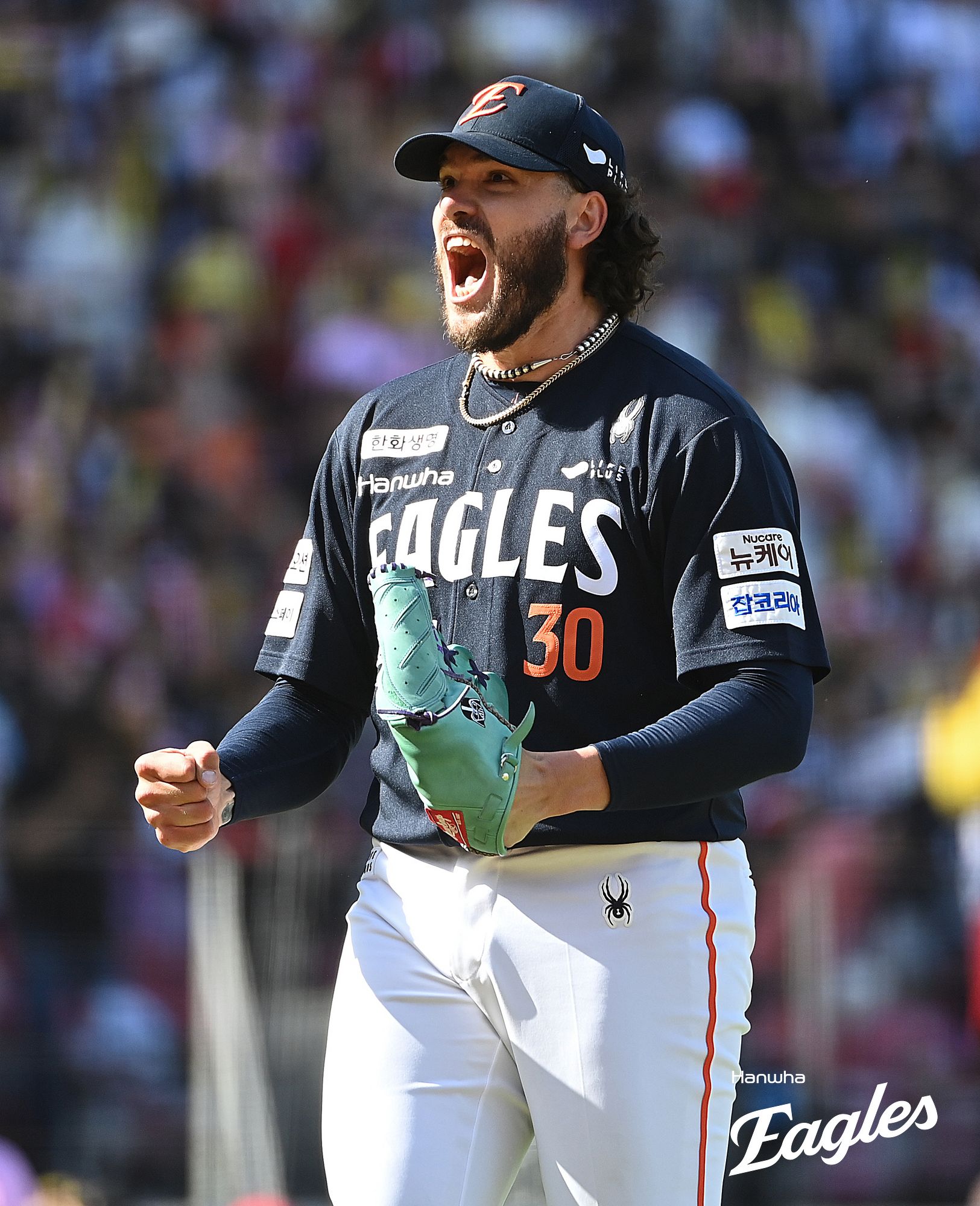 4경기 연속 7이닝 무자책점 경기다. 지난달 9일 잠실 두산전에서 6이닝 4실점을 기록한 폰세는 이날 마지막 이닝을 시작으로 15일 문학 SSG전, 20일 대전 NC전, 27일 대전 KT전에 이어 이번 광주 KIA전까지 도합 29이닝 무자책점 기록을 이어갔다. 패전 없이 6연승을 달리며 다승 부문 공동 1위.