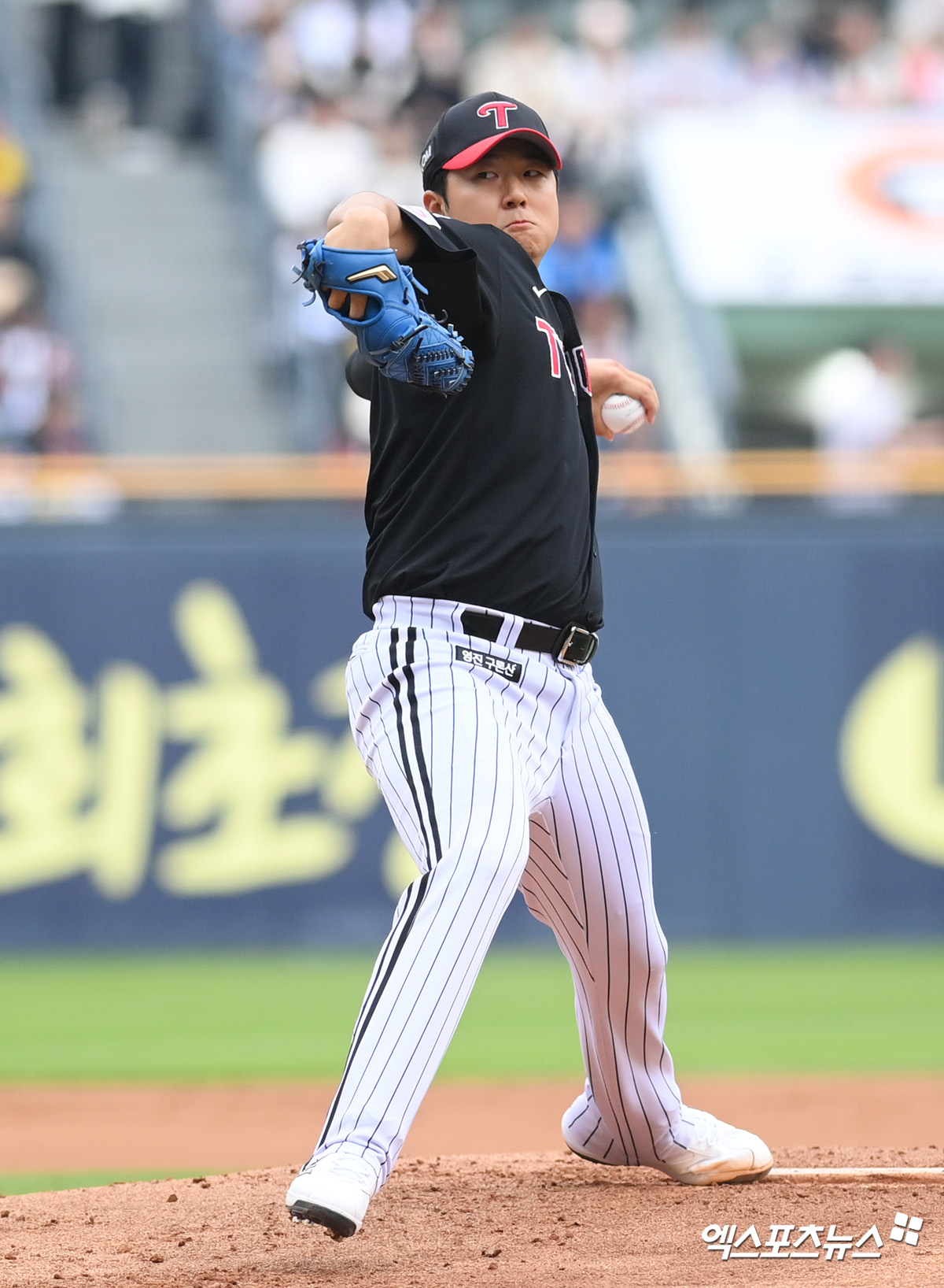 (엑스포츠뉴스 잠실, 고아라 기자) 5일 오후 서울 잠실야구장에서 열린 '2025 신한 SOL Bank KBO리그' LG 트윈스와 두산 베어스의 경기, 1회말 LG 선발투수 송승기가 공을 힘차게 던지고 있다.