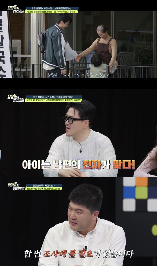 5일 방송되는 채널A '탐정들의 영업비밀'(이하 '탐비') 탐정 실화극 '사건 수첩' 코너에서는 "딩크로 살았는데 남편에게 숨겨둔 자식이 있는 것 같다"라는 내용의 실화가 다뤄진다.