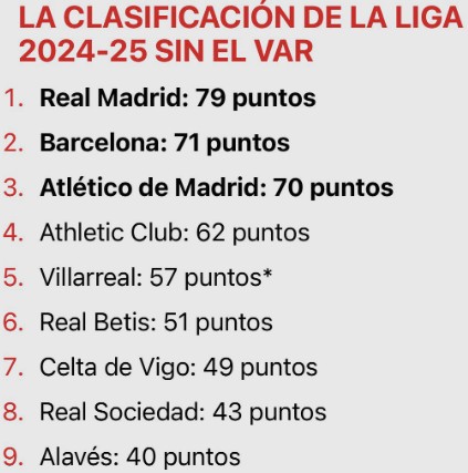 하지만, 스페인 현지에서 VAR이 없었다면 지금 리그 순위는 달랐을 것이라는 주장이 나왔다.