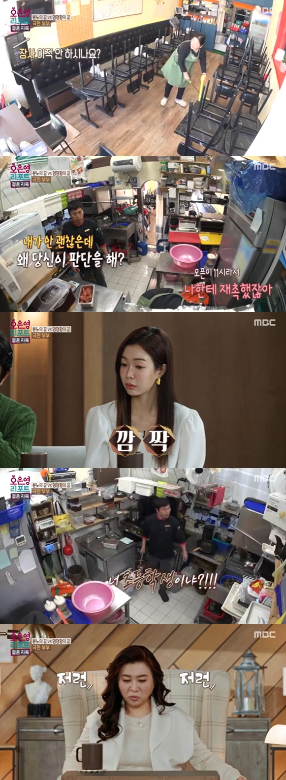 아직 의자가 테이블에 올라가 있는 상황에서 손님이 장사를 하냐고 묻자, 아내는 "죄송해요. 의자만 얼른 올리면 돼요"라며 손님을 받는 모습을 보였다. 남편은 "내가 안 괜찮은데 왜 당신이 판단해?"라며 화를 냈고, 결국 손님은 돌아가는 모습을 보였다.