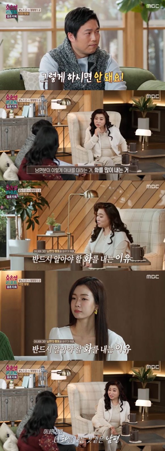 5일 방송된 MBC '오은영 리포트 - 결혼 지옥'에서는 365일 24시간 아내에게 극도로 분노 모드인 남편과 남편의 선을 넘는 분노에 무반응으로 일관하는 아내, '극한 부부'가 오은영 박사를 찾았다.