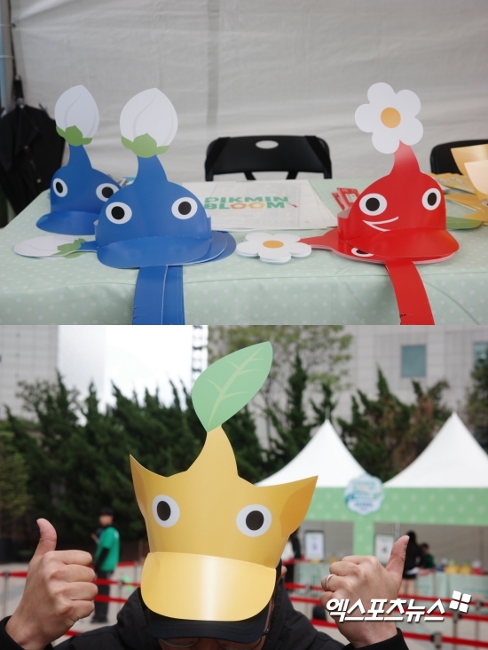 선물은 현대 아울렛 동대문 앞 광장에서 수령할 수 있었으며, 증정품으로는 이벤트 지도, 피크민 종이 선바이저, 종이 엽서 등이 준비됐다.