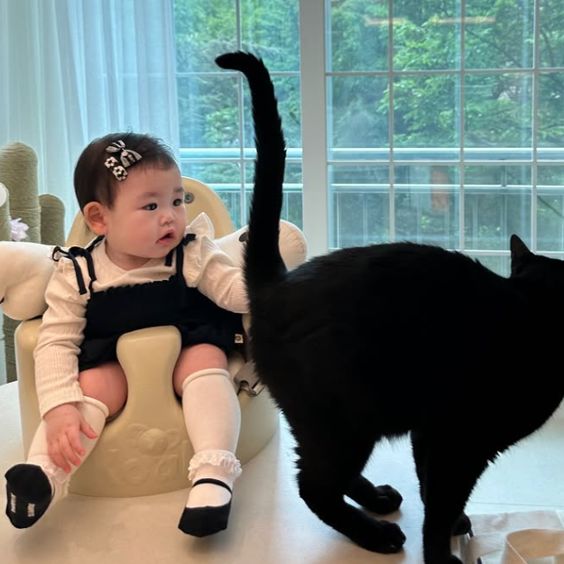 공개된 사진 속 박수홍의 딸 재이는 흰색 셔츠 위에 검은색 원피스를 매치해 공주 같은 스타일을 자랑했다. 또한 재이는 발끝에 검은색 신발 장식이 있는 흰 니삭스, 흰색과 검은색이 섞인 리본 머리핀으로 '블랙 앤 화이트' 패션을 완성했다.