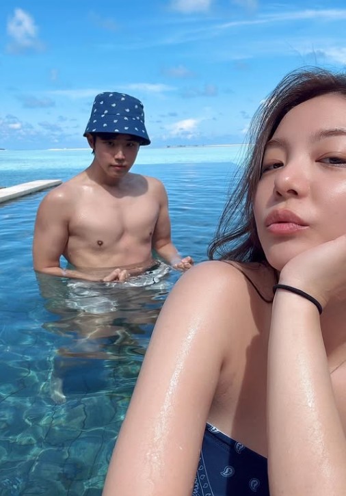 사진에는 몰디브로 신혼여행을 떠난 에일리와 최시훈의 모습이 담겼다. 에일리는 푸른 패턴의 튜브톱 수영복을, 최시훈은 같은 디자인의 버킷햇으로 스타일리시한 커플룩을 완성했다.