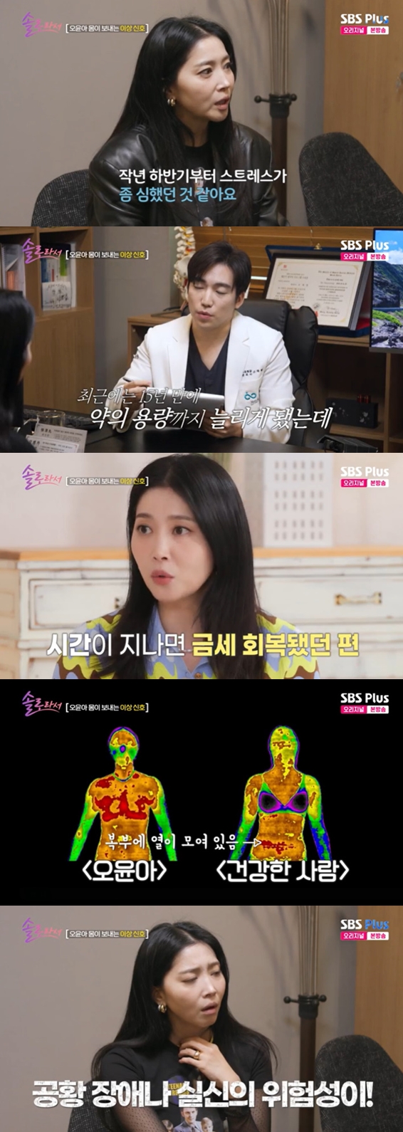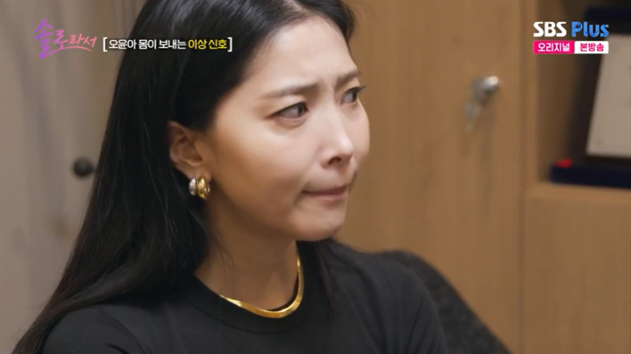 6일 방송된 SBS Plus·E채널 예능 '솔로라서' 18회에서는 오윤아가 한의원을 찾아 건강 상태를 점검하는 모습이 그려졌다.