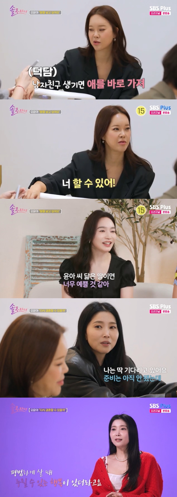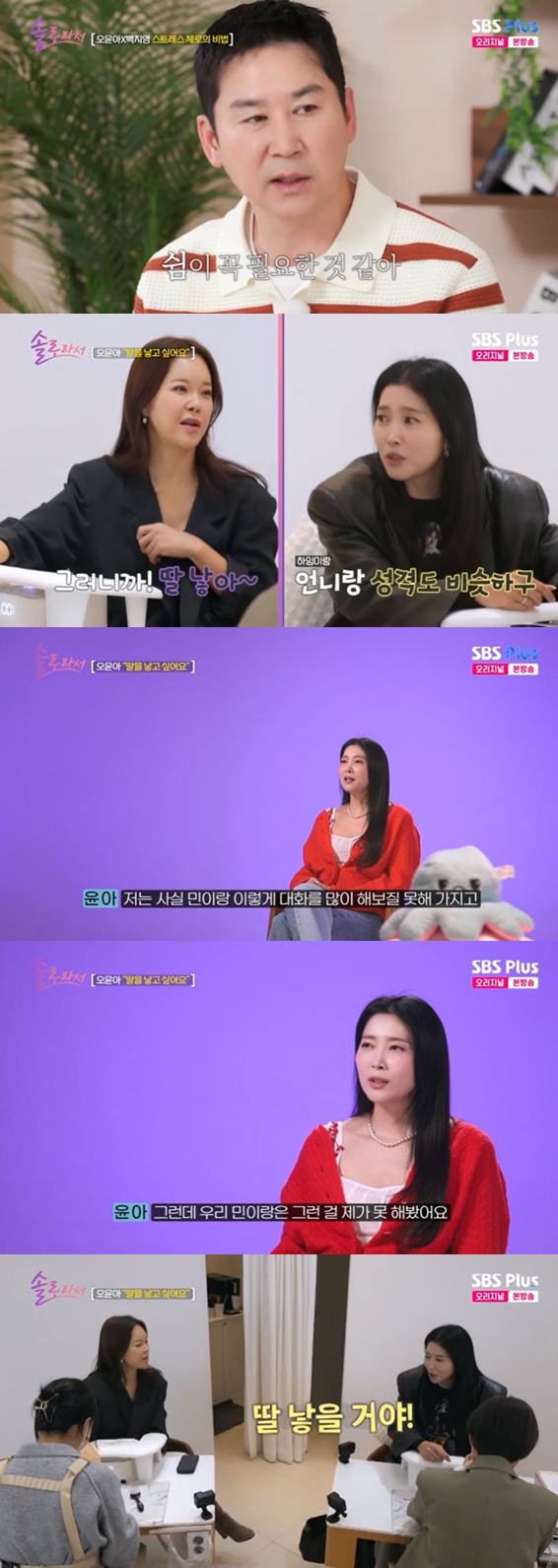 6일 방송된 SBS Plus·E채널 예능 '솔로라서' 18회에서는 오윤아가 한의원을 찾아 건강 상태를 점검하고, 절친 백지영과 힐링의 시간을 보내는 모습이 그려졌다.