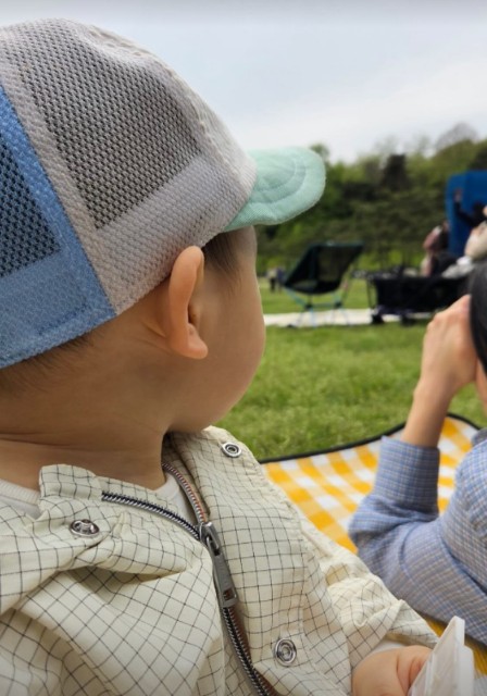 사진에는 연휴를 맞아 나들이에 나선 손연재와 아들의 모습이 담겼다. 손연재는 어딘가를 응시하고 있는 아들의 뒷모습을 공개했다.