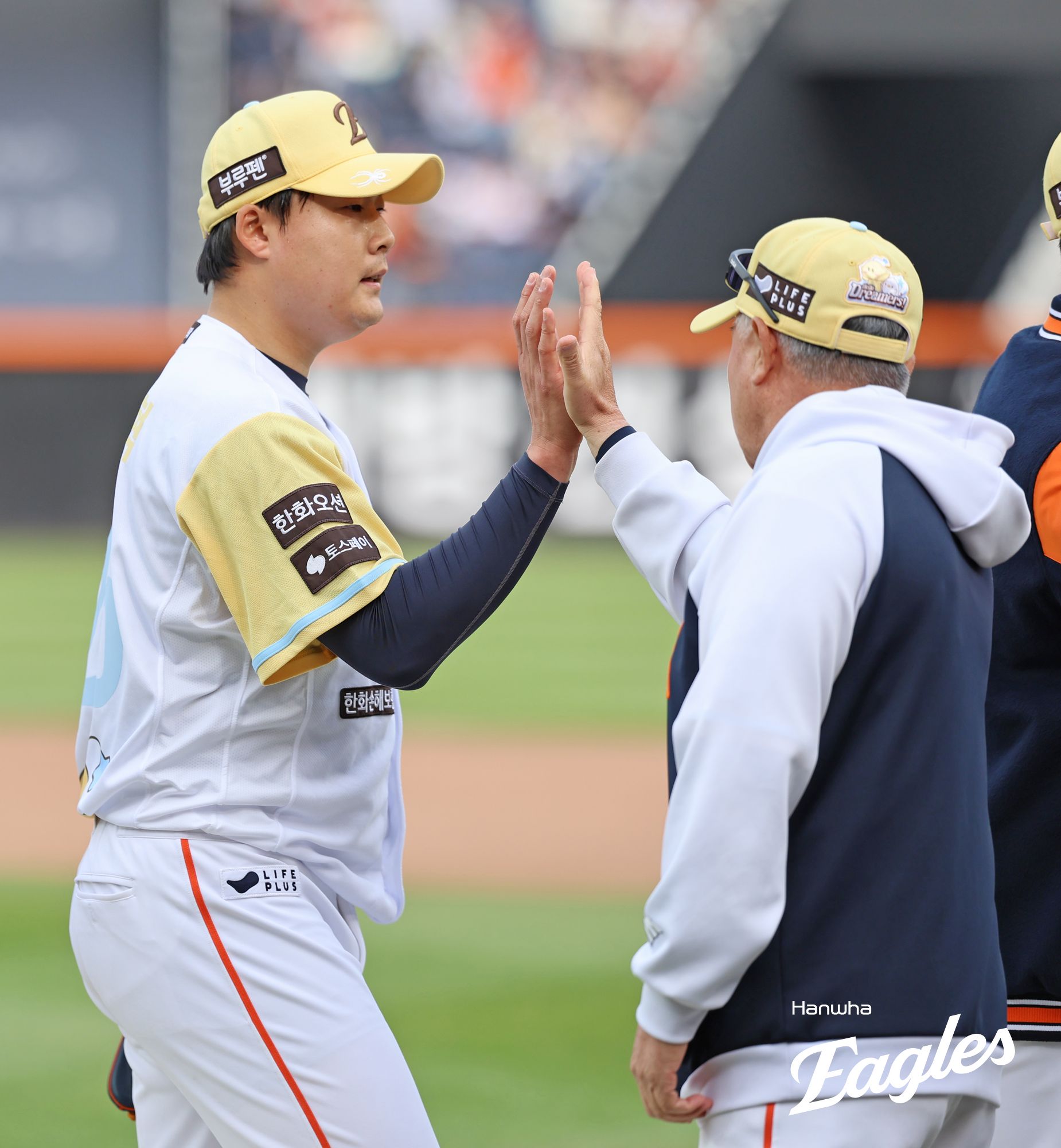 한승혁은 파이어볼러로 이름 날렸던 자신보다 더 빠른 공을 던지는 김서현, 정우주 등을 향해 "아직 싱싱하구나, 이런 생각을 많이 한다"고 웃으면서 "내가 어렸을 때는 스피드가 나오면 쾌감도 있고, 스스로 업 되는 게 있었던 것 같은데 요즘 보면 다들 성숙하고, 신경 안 쓰고 하는 게 대견스럽기도 하다. 나는 이제 서현이, 우주처럼 빠른 공은 못 던지니까 변화구 위주로 타이밍을 뺏으며 던져야 할 것 같다"고 미소지었다.