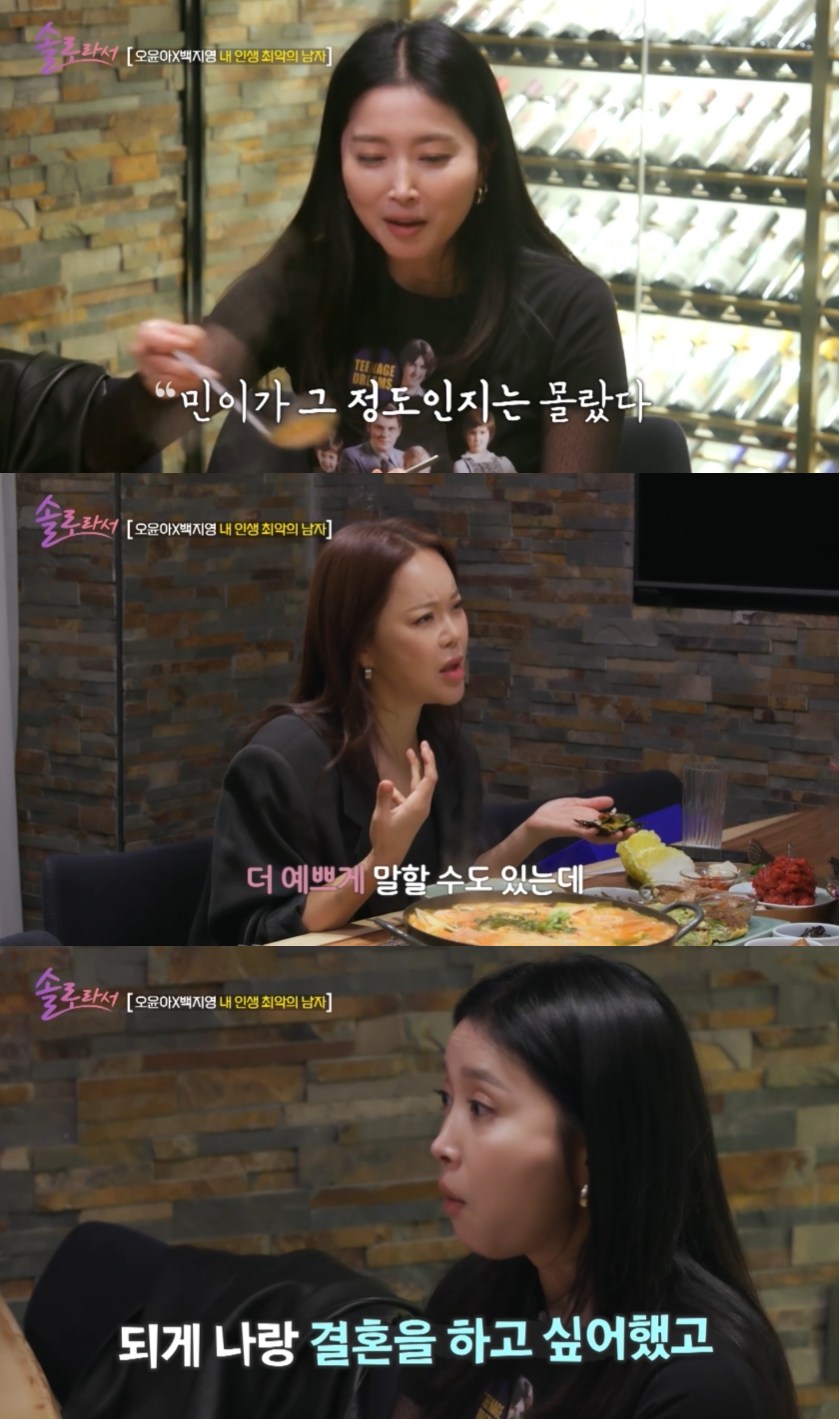 백지영이 "누군가랑 연애하다 헤어지면서 가장 상처가 됐던 말이 있냐"고 묻자 오윤아는 ''민이(아들)'가 그 정도인줄은 몰랐다'는 말이다. 사람이 어떻게 대놓고 저런 말을 하지 싶었다"고 답했다.