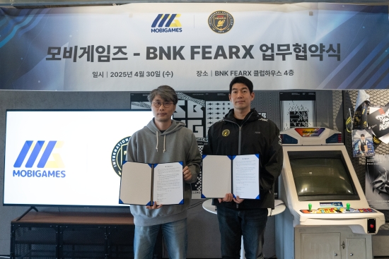 이번 협약은 양사 간 IP 활용을 통한 공동 마케팅 실현을 목표로 추진됐다. 협약식은 지난 4월 30일 진행됐으며, BNK FEARX 종각 클럽하우스에서 SBXG 임정현 대표, 모비게임즈 모회사 모비데이즈 김인범 CIO 등 관계자들이 참석했다.