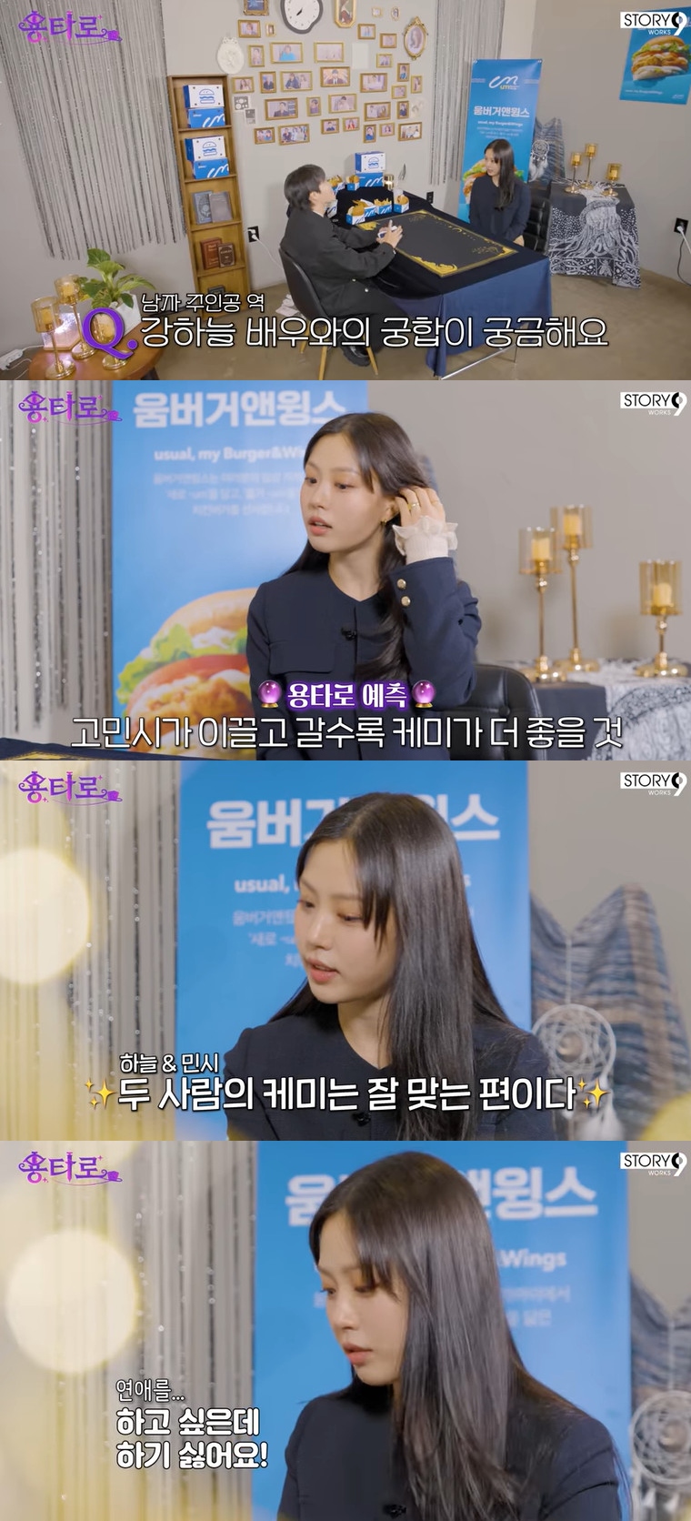 이용진은 남자 주인공 역인 강하늘과의 궁합을 먼저 점쳤고, 고민시가 뽑은 타로 카드를 보고 "하늘 씨가 민시 씨가 하자는 대로 맞춰야 된다. 포괄적인 리더 역할을 하면서 아우르는 듯한 카드"라고 해석했다.