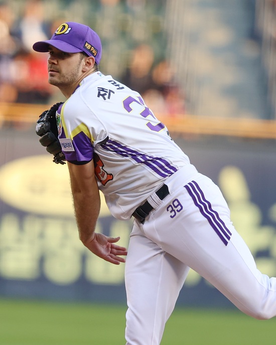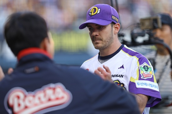 두산은 1회 말 삼자범퇴 이닝에 머물렀다. 정수빈이 유격수 땅볼을 때린 뒤 케이브가 헛스윙 삼진을 당했다. 이어 양의지도 3루수 땅볼을 날렸다.