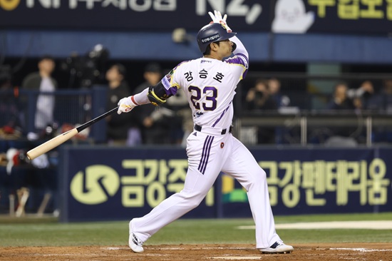 이후 오명진은 바뀐 투수 김강률 상대해 스트레이트 밀어내기 볼넷을 얻어 역전 득점을 이끌었다. 이어 강승호도 우익선상을 꿰뚫는 2타점 적시 2루타로 달아나는 득점을 만들었다.