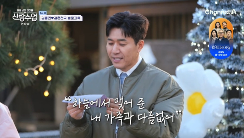 7일 방송된 채널A '요즘 남자 라이프-신랑수업(이하 '신랑수업')' 162회에서 김종민은 코요태 멤버 신지와 빽가를 위한 이벤트를 준비했다.