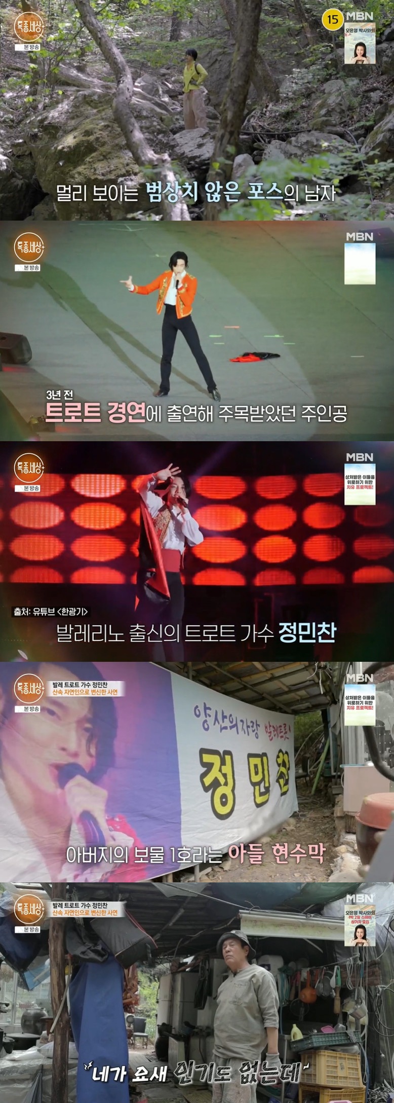 남다른 목청을 자랑하며 산속에서 발성 연습을 하던 주인공은 한 방송에 출연해 발레와 트로트를 접목한 '발레 트로트'를 선보이며 사랑을 받았던 트로트 가수 정민찬이었다.