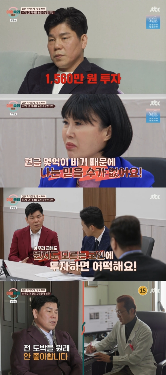 아내가 남편을 이토록 무시하는 이유는 돈이었다. 남편이 불법 코인에 빠졌다는 것. 아내는 "40일째 불법 코인때문에 싸우고 있다. 거래소 등록도 안 되고 상장도 안 됐다. 매일 코인 다단계 수업을 받으러 다녔다"고 분통을 터뜨렸다.