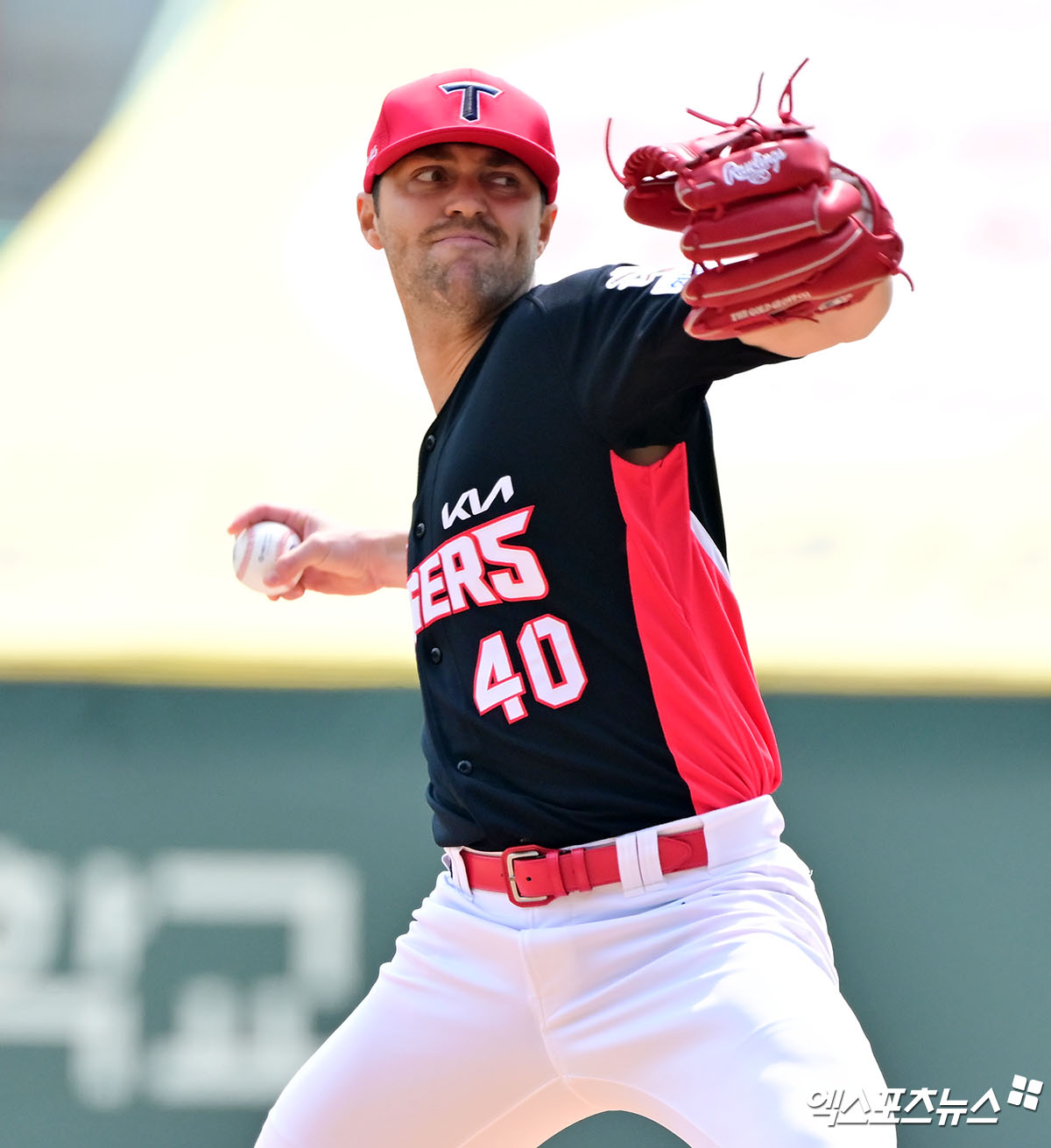 ​​​​​​​(엑스포츠뉴스 인천, 김한준 기자) 11일 오후 인천SSG랜더스필드에서 열린 '2025 신한 SOL Bank KBO리그' KIA 타이거즈와 SSG 랜더스의 경기, 1회말 KIA 선발투수 네일이 공을 힘차게 던지고 있다.