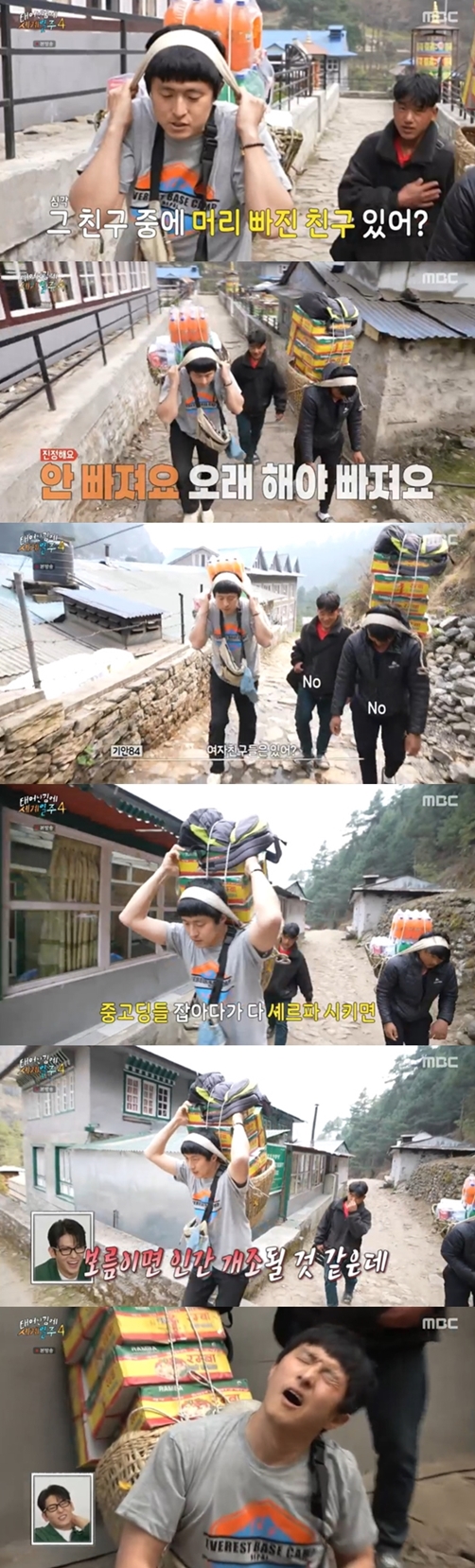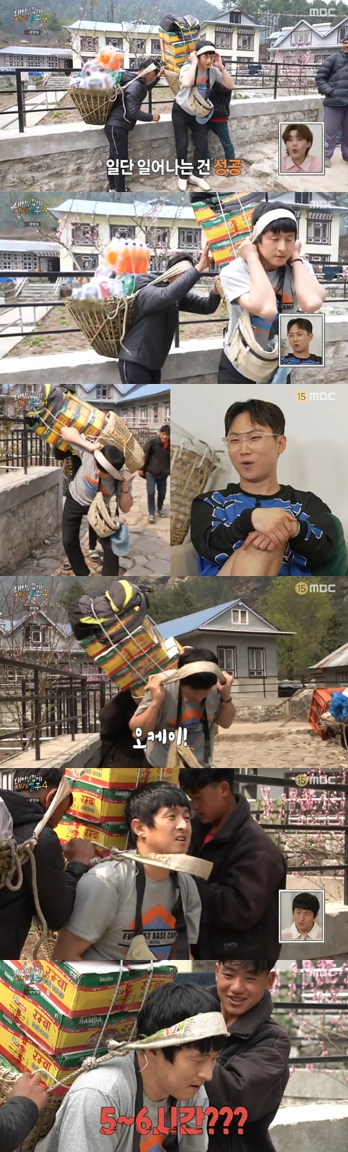 이에 30kg에 달하는 무거운 짐을 든 코리안 셰르파 기안84는 "어깨끈이 없어 중심을 잡기 힘들다"라고 말하며 어려움을 토로했고, "도움이 되고 싶은데"라며 열심히 노력하는 모습을 보였다.