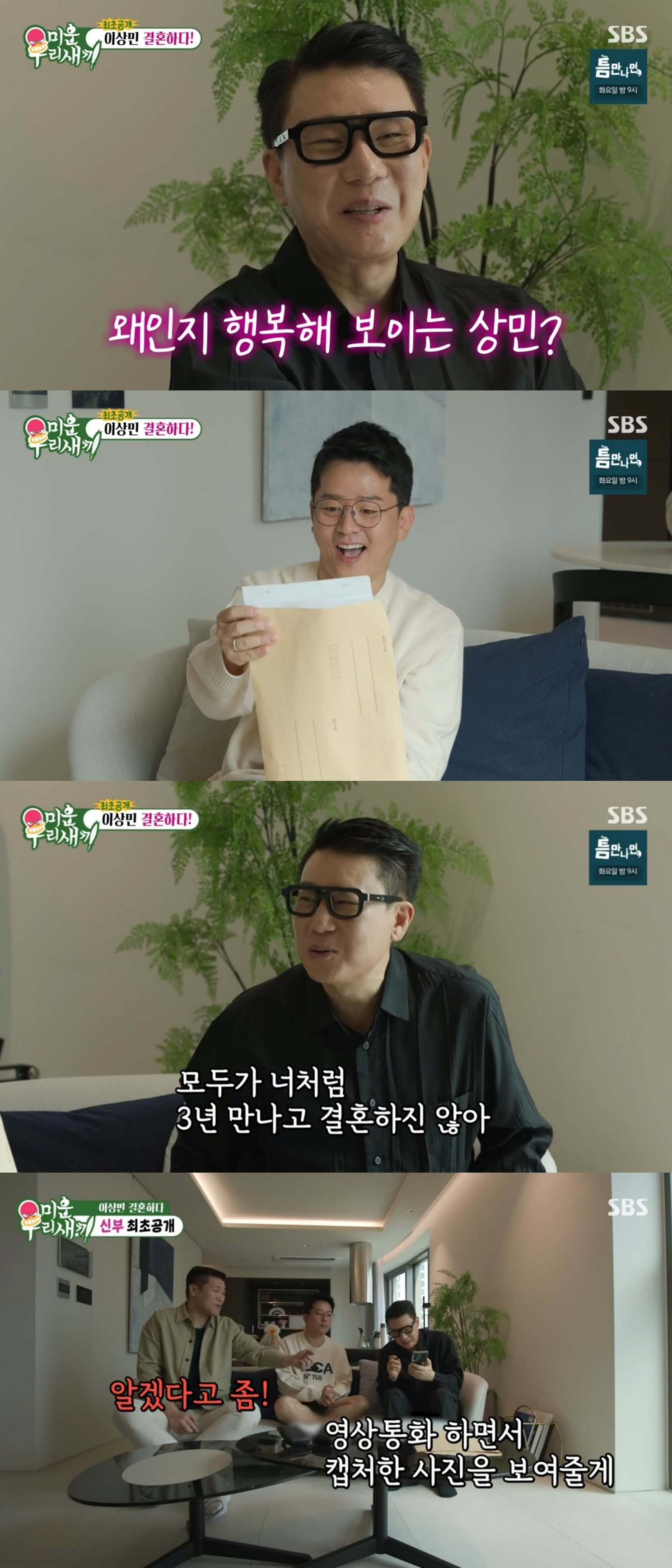 첫 연락 후 4개월 만에 결혼한다는 소식에 서장훈은 "형한테는 좋은 일이지만 그분을 걱정하는 거다"라고 찐친다운 면모를 보였고, 장모님이 언급되자 이상민은 "장모님께서 방송에서 구김 없고 솔직한 모습을 보신 것 같다"면서 장모님이 자신을 좋아한다고 자신했다.