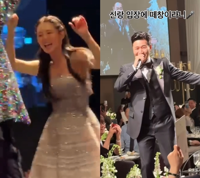 신랑의 노래에 하객들은 마치 아이돌 무대의 응원법처럼 단어를 외쳤고, 신지는 "신랑 입장에 떼창이라니"라며 처음 보는 결혼식 풍경에 놀란 감정을 드러내기도 했다.