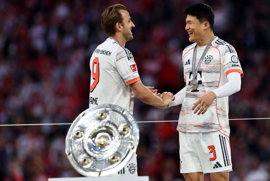 김민재는 지난 11일 독일 뮌헨의 알리안츠 아레나에서 열린 2024-2025 독일 분데스리가 시상식에서 우승 트로피인 '마이스터 샬레'를 높이 들었다.