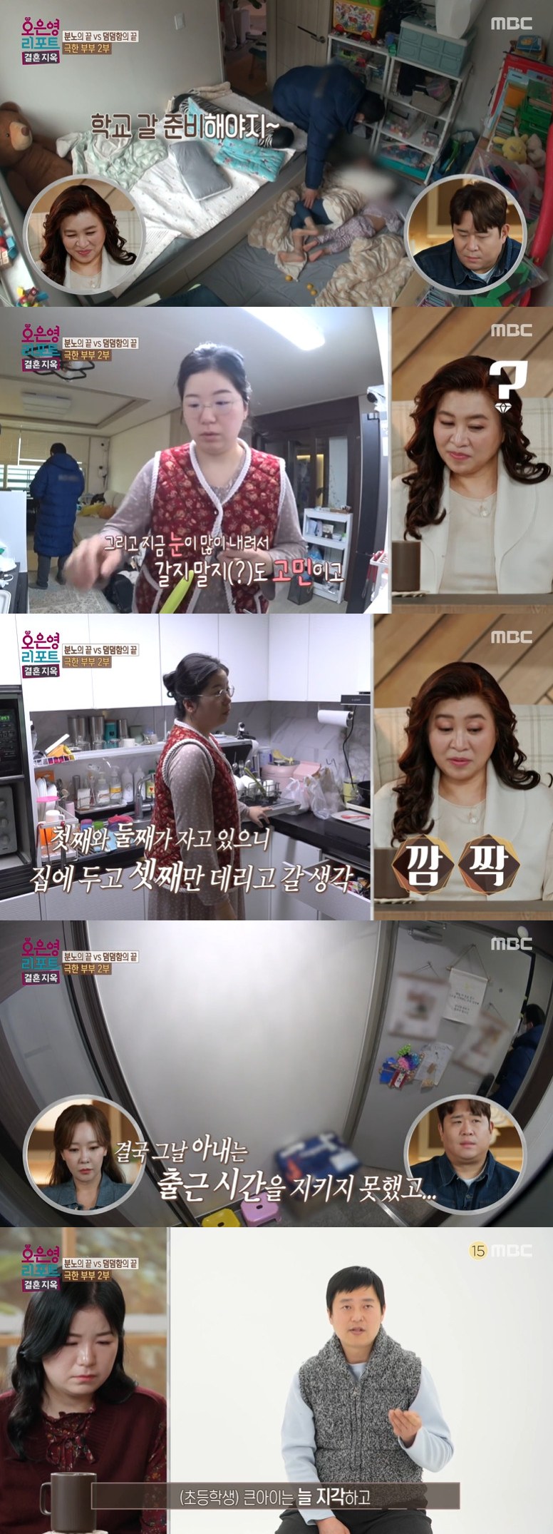 남편에게 "당신 일에 지장 없게 움직일 테니까 당신 일해라"고 말했던 아내는 결국 그날 가게 출근 시간을 지키지 못했다고. 이어 남편은 "(아내가) 잠이 많다. 저는 다 포기하고 제 살과 뼈를 깎아가며 일을 하는데 전날 늦게 자고 늦게 일어난다. 그러다 보니 아이들 케어하는 부분도 피해가 생긴다. 아이들도 늘상 지각한다"며 속상한 마음을 드러냈다.