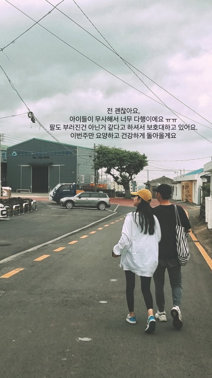 이어 남편 최성욱의 팔짱을 꼭 끼고 다정히 걸어가는 사진을 올리며 걱정하는 팬들을 다독였다.