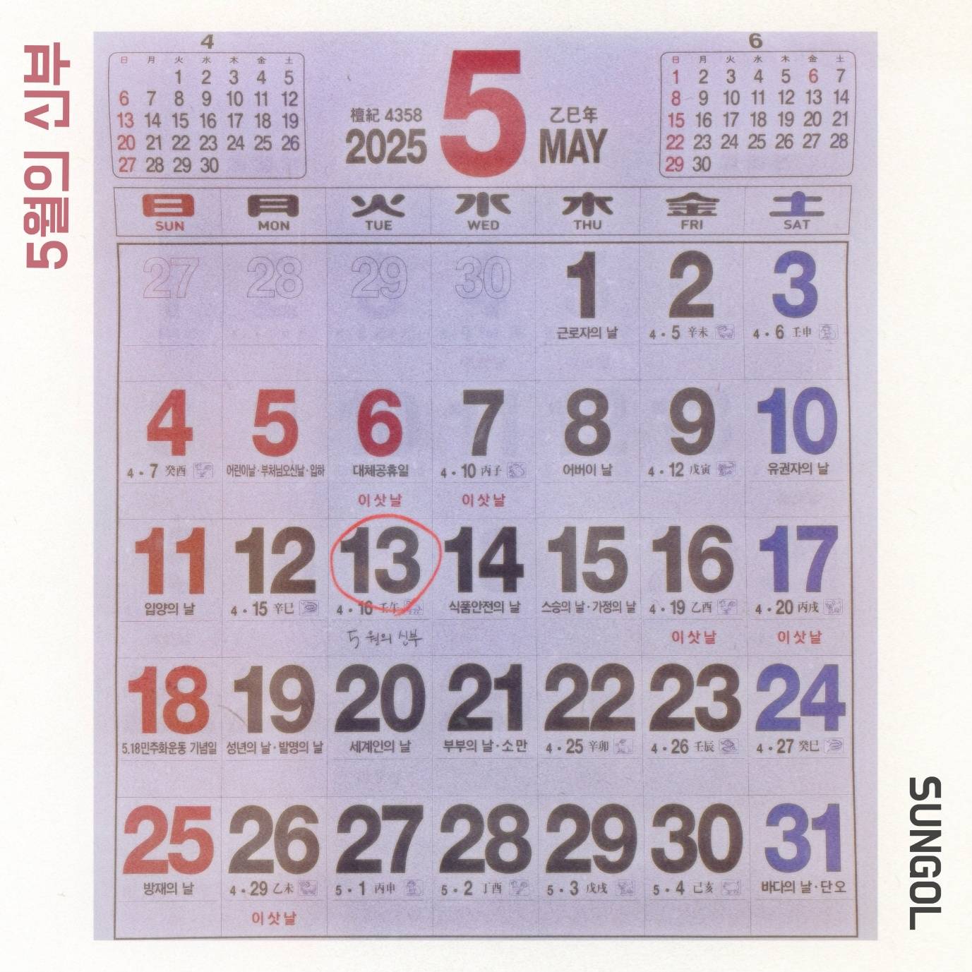 SUNGOL은 13일 낮 12시 각종 온라인 음원 사이트를 통해 새 싱글 ‘5월의 신부’를 발매한다.