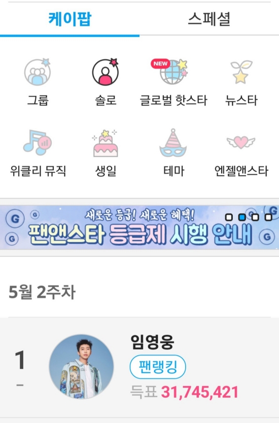 최근 '팬앤스타'에 따르면, 임영웅은 5월 2주 차 솔로가수 인기 랭킹 투표에서 1위에 등극했다.