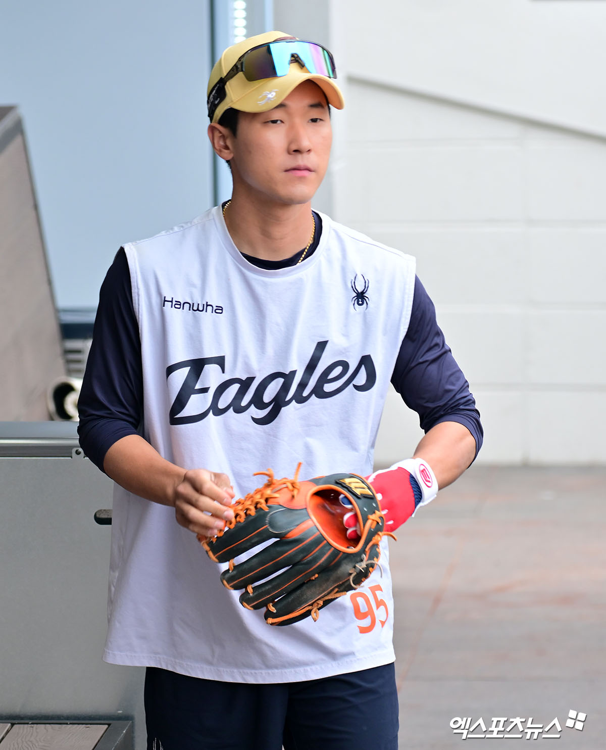 (엑스포츠뉴스 대전, 김한준 기자) 14일 오후 대전 한화생명 볼파크에서 열리는 '2025 신한 SOL Bank KBO리그' 두산 베어스와 한화 이글스의 경기, 한화 황영묵이 훈련에 임하고 있다.