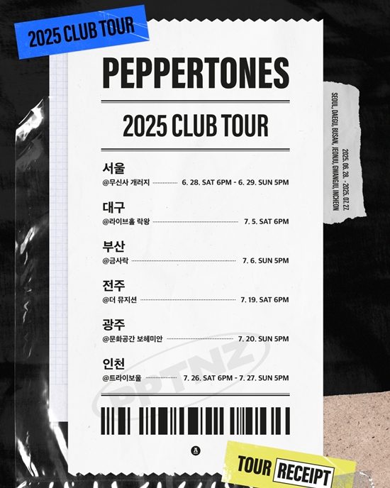 페퍼톤스는 오는 6월 28~29일 서울을 시작으로 7월 5일 대구, 6일 부산, 19일 전주, 20일 광주, 26~27일 인천까지 전국 6개 도시에서 클럽 투어를 개최한다