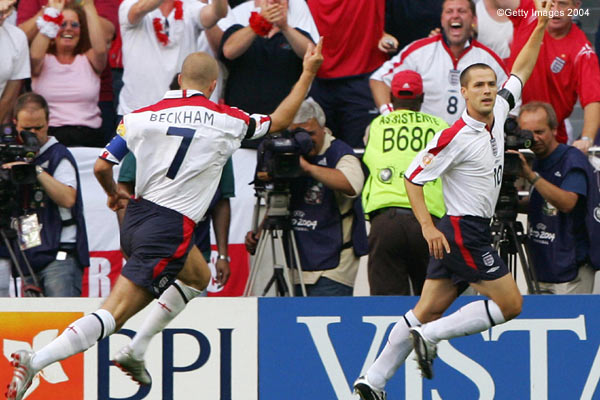 첫 골을 성공시키 잉글랜드 오웬과 캡틴 베컴(左)