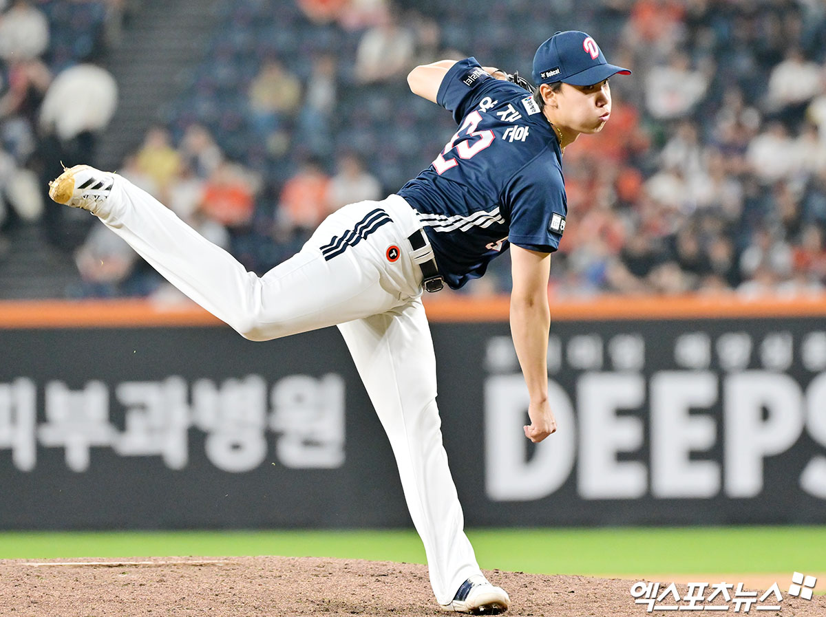 (엑스포츠뉴스 대전, 김한준 기자) 15일 오후 대전 한화생명 볼파크에서 열린 '2025 신한 SOL Bank KBO리그' 두산 베어스와 한화 이글스의 경기, 9회말 두산 양재훈이 공을 힘차게 던지고 있다.