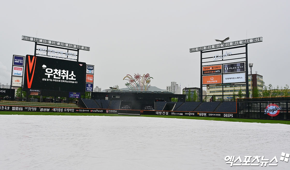 (엑스포츠뉴스 대전, 김한준 기자) 16일 오후 대전 한화생명 볼파크에서 열리는 '2025 신한 SOL Bank KBO리그' SSG 랜더스와 한화 이글스의 경기, 우천 취소가 되어 17일 더블헤더로 진행된다.