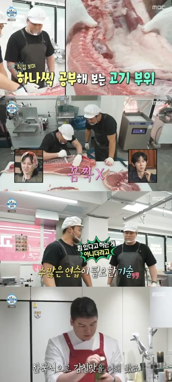 이장우는 돼지고기 부위부터 공부한 뒤 직접 실습에 나섰다. 이장우는 아무리 힘을 써도 안 되자 "정육 쉽지 않다"며 친구를 존경의 눈빛으로 쳐다봤다.